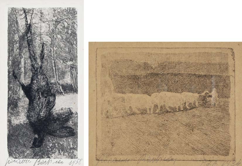 BARBISAN GIOVANNI Treviso 1914 - 1988 Fagiano 1958 - Buoi 1934 lotto di 2 acqueforti 24,5x12 - 12,5x15,5 (lastre) entrambe firmate e datate Bibliografia: “Barbisan” ed. Electa a cura di Marco Goldin pag. 189 tav. I17 Esposizioni: Galleria d'Arte Moderna San Giorgio Mestre etichette al retro