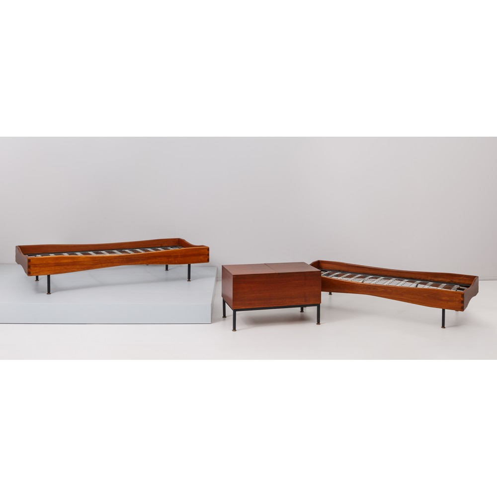 AN ITALIAN PAIR BEDS WITH CABINET.