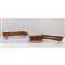 Coppia di letti in legno di noce e metallo verniciato nero, con mobile contenitore in legno e metallo.