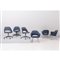 Sei sedute, tre modello ‘Conference Relax’ con ruote e tre poltroncine modello ‘Executive’, tutte con struttura in metallo con imbottitura e rivestimento in tessuto blu.