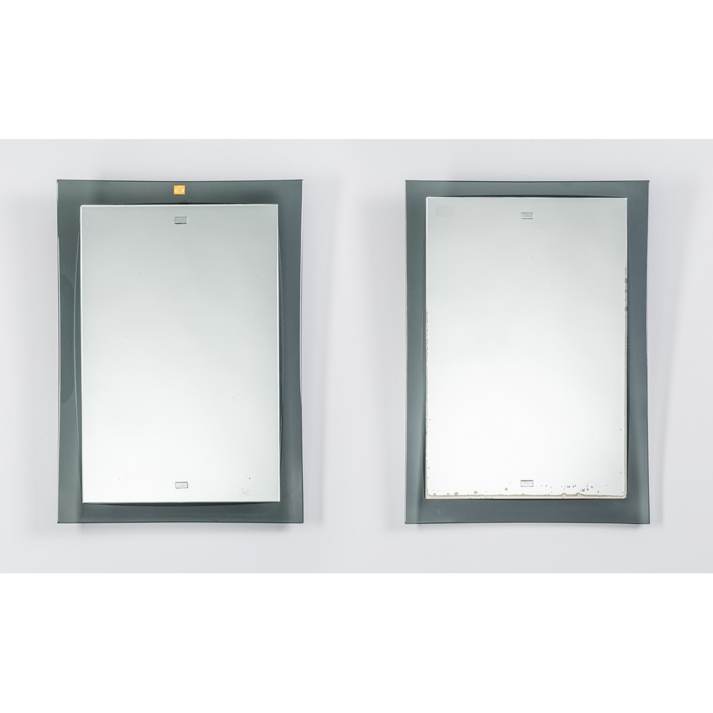 Coppia di specchi da parete, corpo rettangolare, cornice concava in vetro di forte spessore fumè. Etichetta ‘Cristal Labor’.