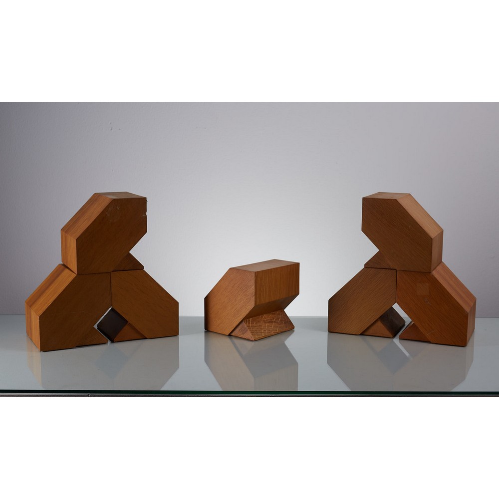 SEVEN ITALIAN WOODEN BOOKEND ELEMENTS.