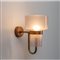 Lampada da parete ad una luce, struttura in ottone, diffusore circolare in vetro bullicante rosa, etichetta di produzione.