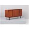 Sideboard in legno di teak, corpo rettangolare, due ante scorrevoli, cinque cassetti.