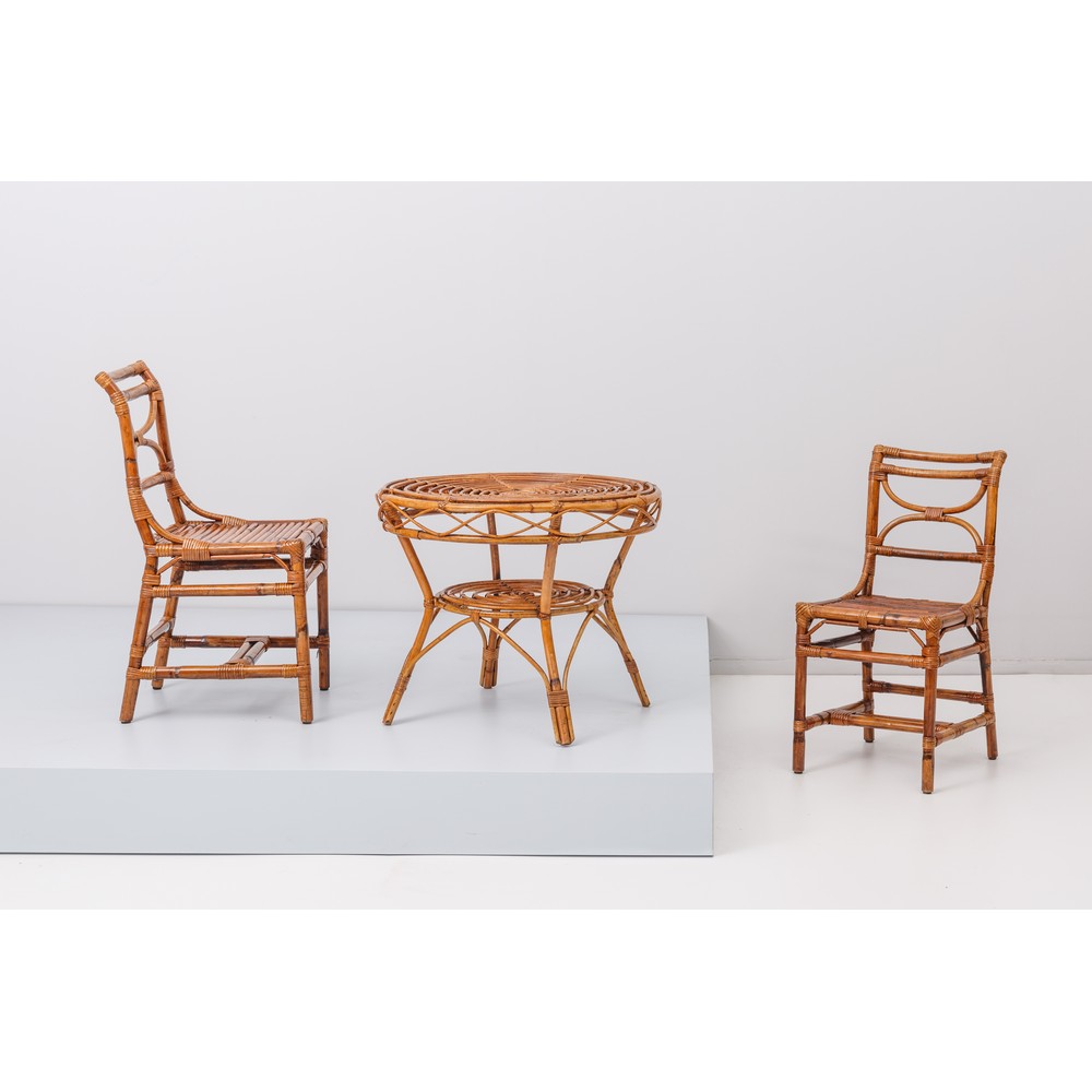 Due sedie e un tavolo basso in bambù.