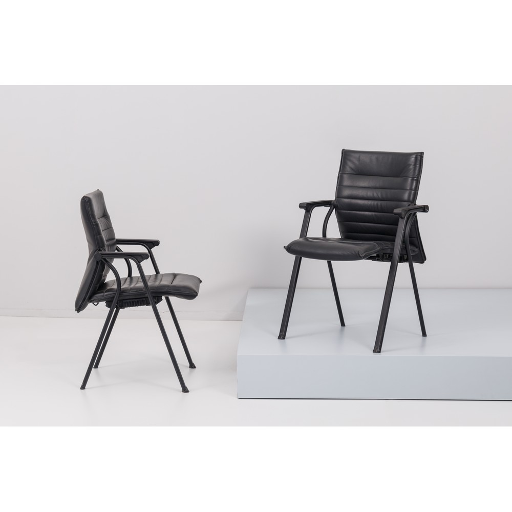 Coppia di sedie da ufficio reclinabili, struttura in metallo e pelle nera.