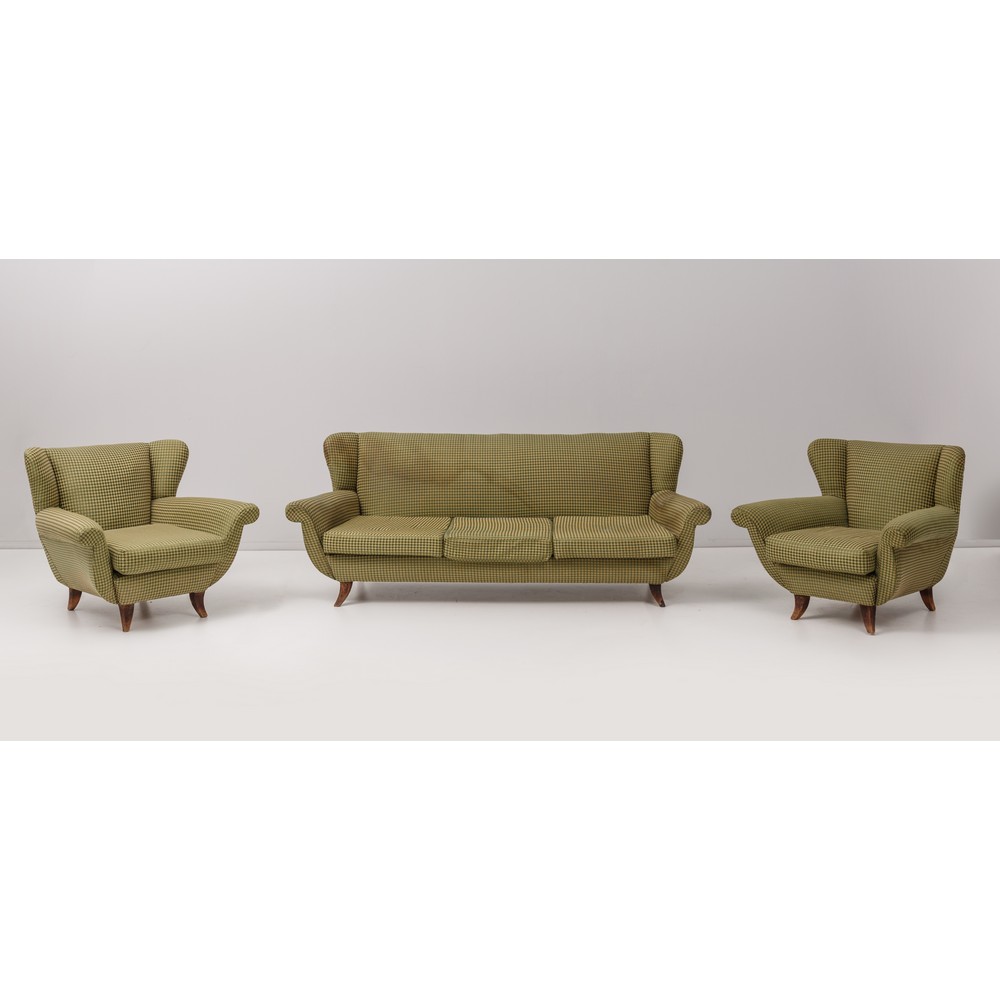AN ITALIAN SOFA AND A PAIR OF ARMCHAIRS.