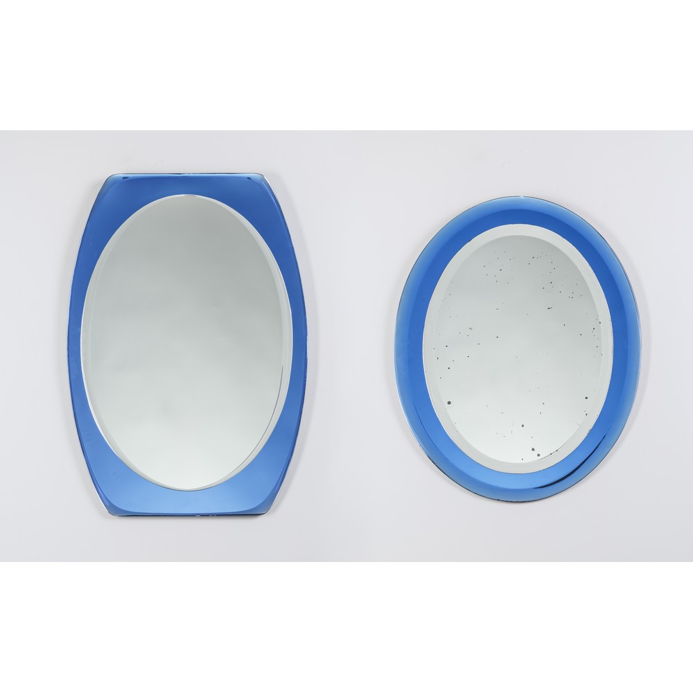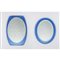 Due specchi da parete, corpo ovalizzato, cornice in vetro blu, vetro specchiato ovale. Difetti.