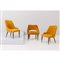 Tre sedute, struttura in legno con imbottitura e rivestimento in tessuto ocra, piedi torniti in legno e a spillo. Segni di usura.