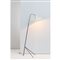 Lampada da terra a una luce, struttura in metallo dorato tubolare, piede tripode, diffusore in alluminio verniciato bianco.