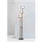 Lampada da terra a tre luci, base in marmo circolare, tre steli in tondino di ottone, diffusori cubici in vetro curvato blu light.