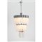 Lampada da soffitto a corpo conico su tre livelli, struttura in metallo cromato con elementi elicoidali in vetro lattimo.