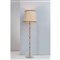 Lampada da terra, base circolare in marmo, stelo in ottone decorato con elementi sferici e ovali in vetro trasparente. Paralumi in tessuto.