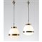 Coppia di lampade a sospensione modello ‘Delta’, ottone nichelato diffusore in vetro opalino coppa in cristallo stampato. Segnalazione Compasso d’oro 1960.