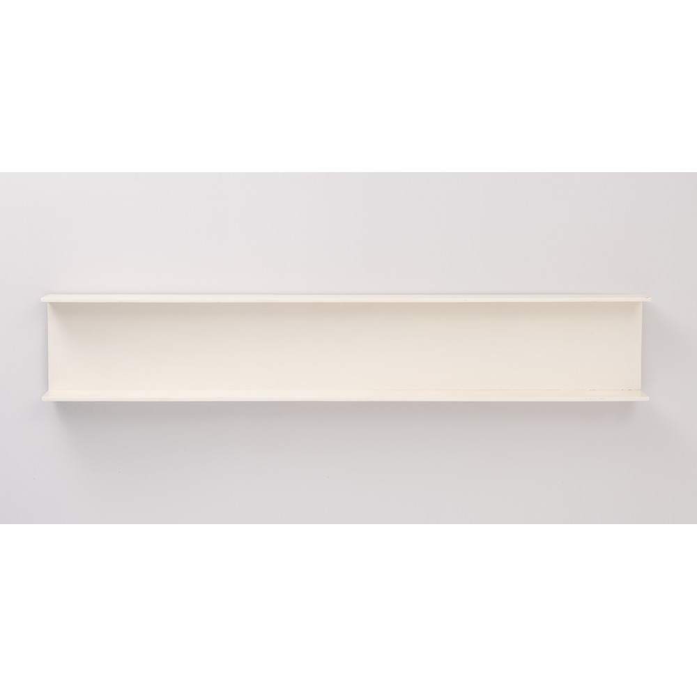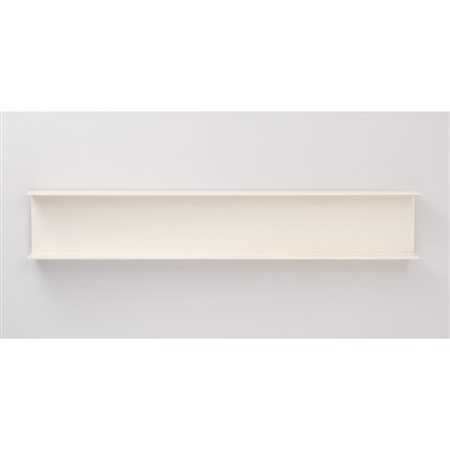 Una mensola libreria a ‘C’ in legno laccato bianco.