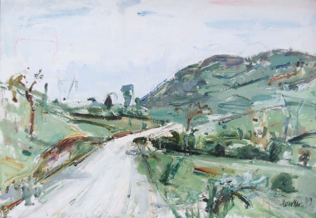 MORI NENO Venezia 1899 - 1968 Passo San Boldo 1959 olio su tela 55x80 firma e data in basso a destra data e titolo su etichetta dell' Autore al retro