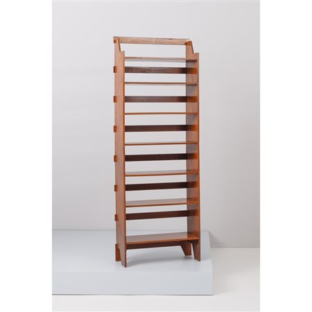 A WOODEN MODULAR BOOKCASE BY RENATO FORTI.