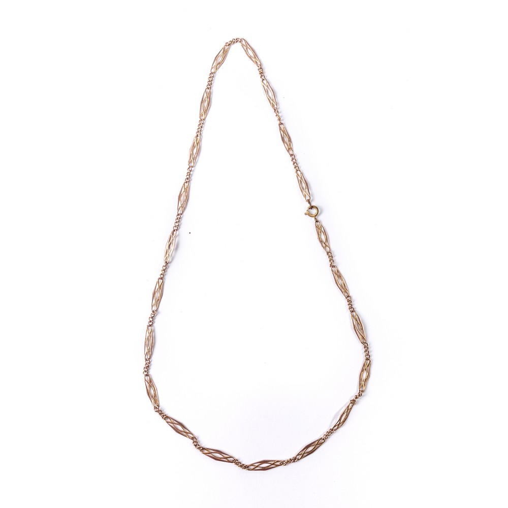 CATENA in oro giallo 9 KT, gancio in metallo dorato (g. 7,67).