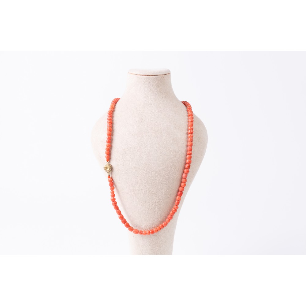 COLLANA di corallo sfaccettato, susta in argento dorato (mancanza).