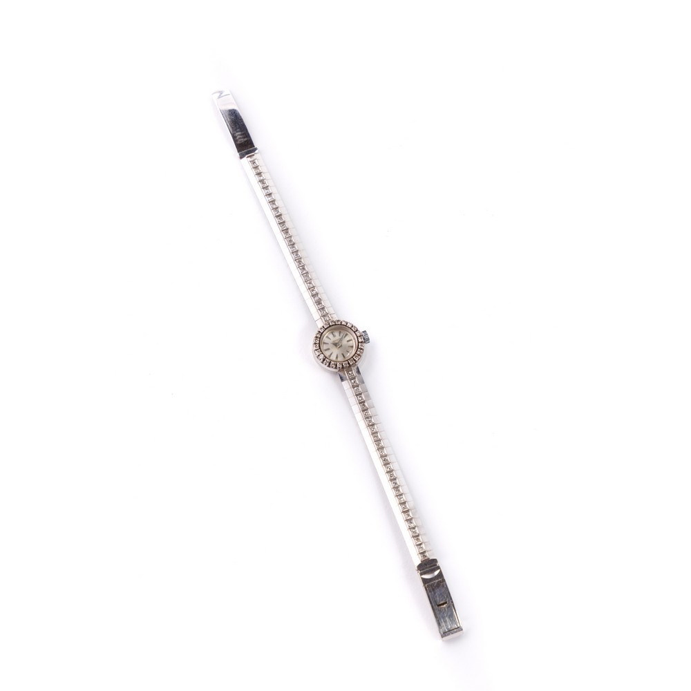 OROLOGIO Parker da donna in oro bianco 18 KT con diamanti taglio huit/huit ct. 0,80 peso di stima, carica manuale (da revisionare).