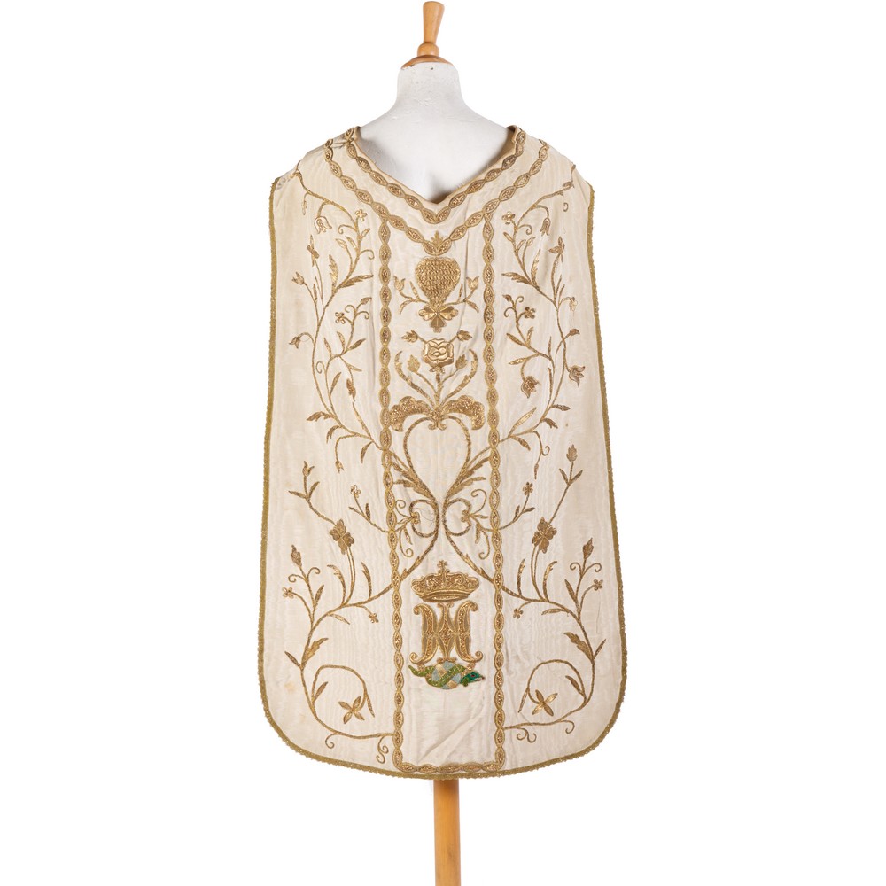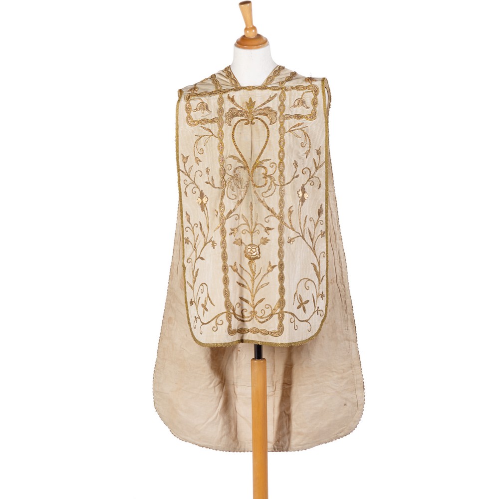 PIANETA in stoffa riccamente lavorata a fili d’oro (difetti).