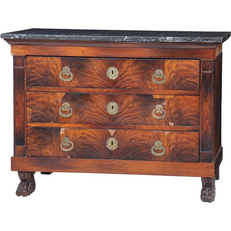 CASSETTONE Impero a tre cassetti in mogano e piuma di mogano.