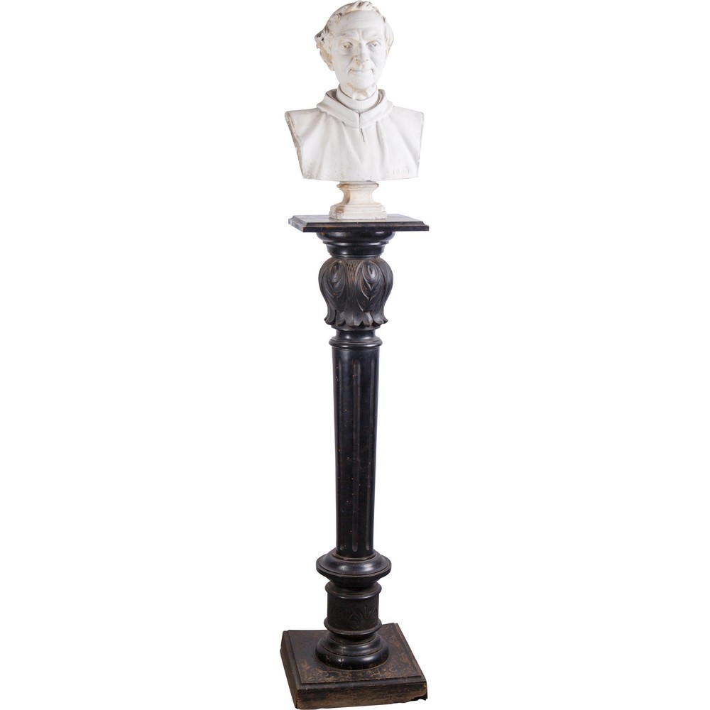 SCULTURA in schiuma di gesso raffigurante "Mezzobusto di prelato" con colonna in legno ebanizzato, firmata C. Fazio.