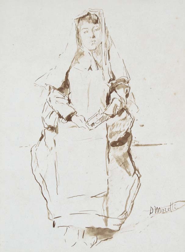 MORELLI DOMENICO Napoli 1826 - 1901 Figura gouache su carta 40x30 firma in basso a destra