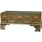 CASSAPANCA in legno laccato nei toni del verde, fregi dorati ad argento a mecca.