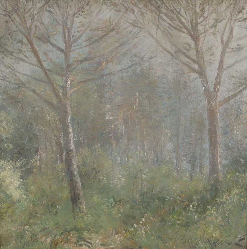 BARBISAN GIOVANNI Treviso 1914 - 1988 Alberi olio su tavola 35x35 firma in basso a destra e al retro Autentica dell'Autore al retro datata 1985