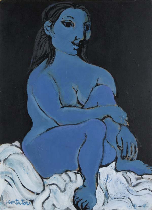 CANTATORE DOMENICO Ruvo di Puglia (Ba) 1906 - Parigi 1998 Odalisca olio su faesite 45x32 firma in basso a sinistra Esposizioni: Galleria d'Arte Sianesi Milano – etichetta e timbri al retro