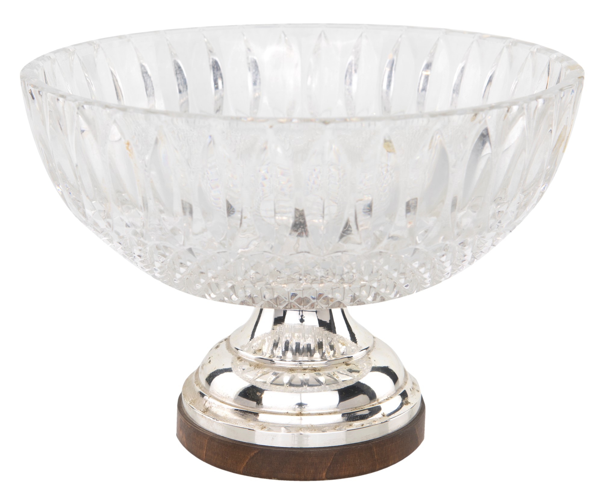 Coppa centrotavola in cristallo intagliato e argento, Elisabeth Hutte, Germania