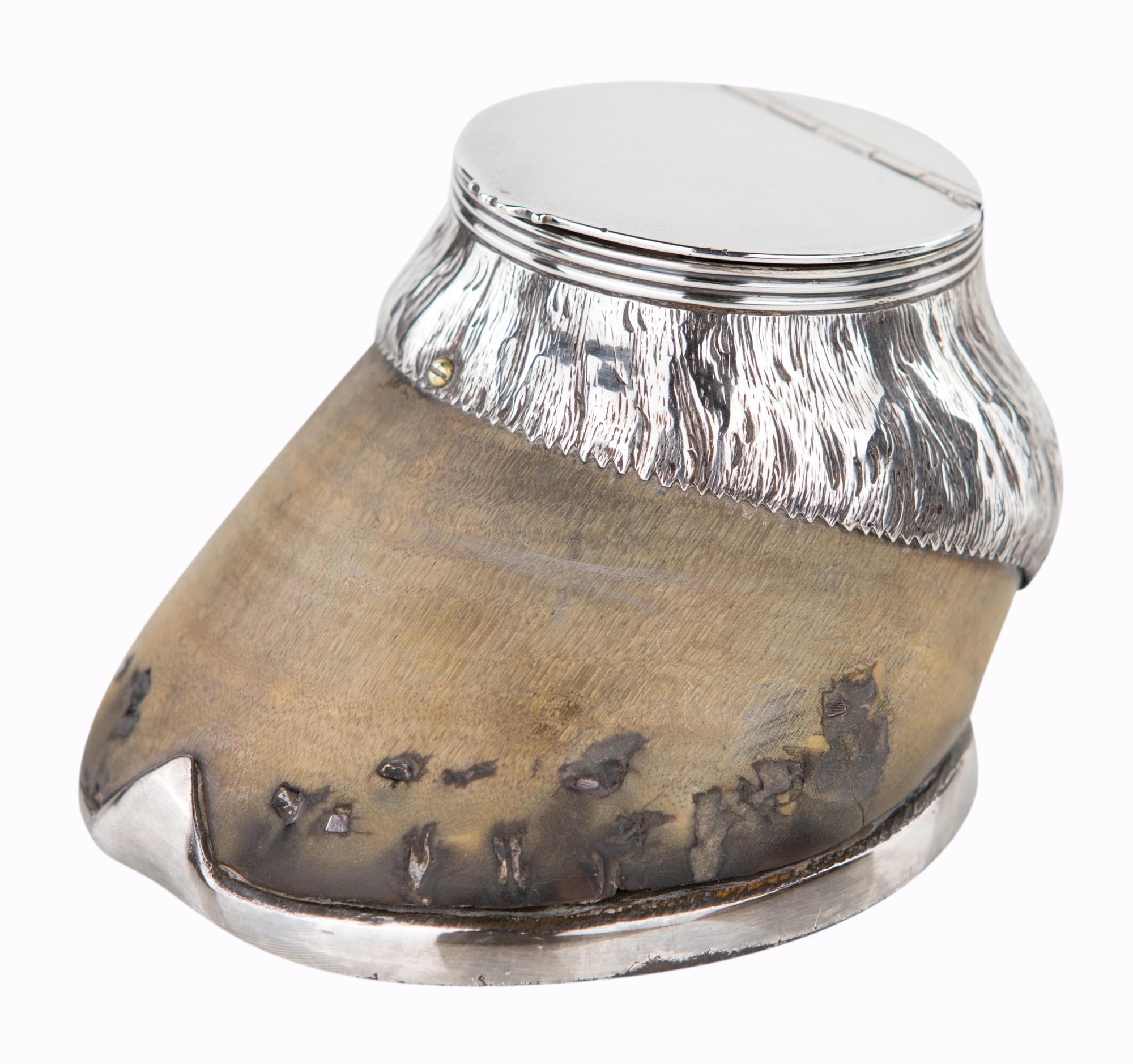 Calamaio con zoccolo di cavallo montato in argento, Londra 1908, argentiere R.P.