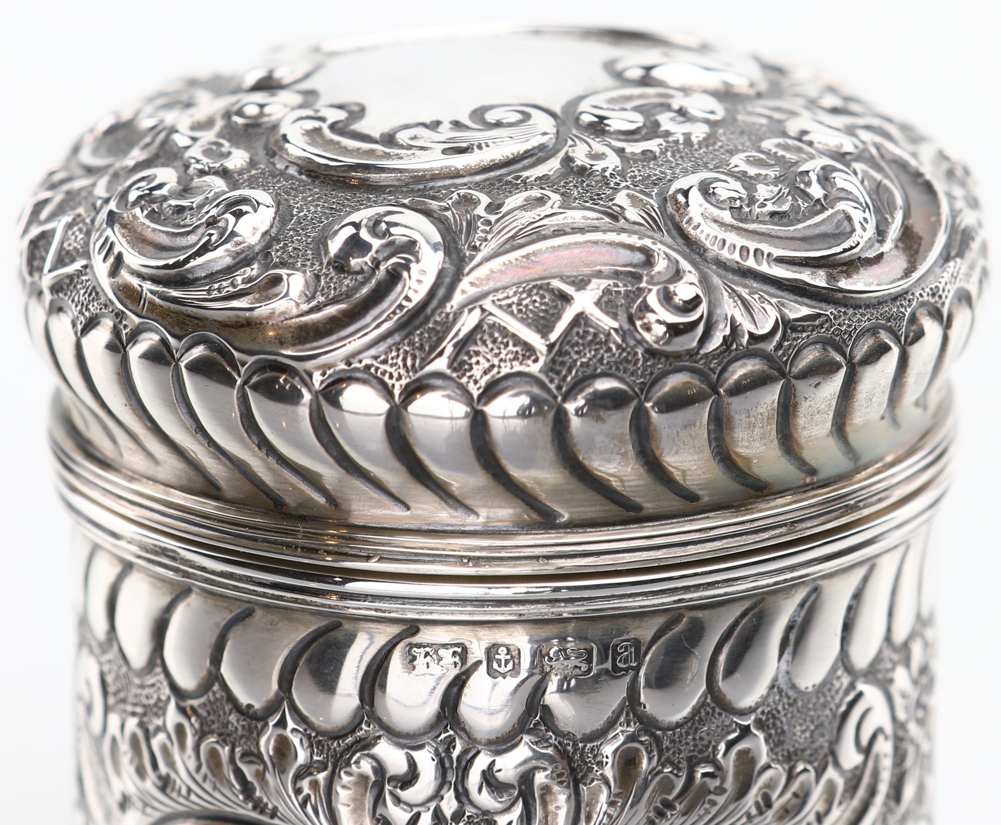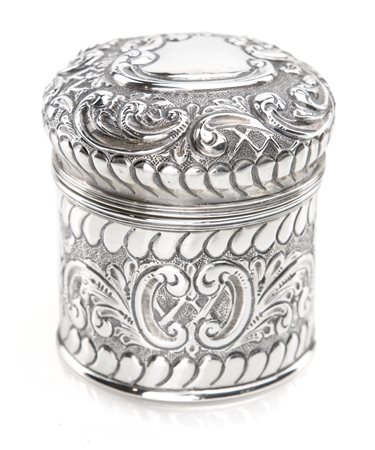 Scatola porta tè in argento sbalzato, Birmingham 1900, argentiere H.H.