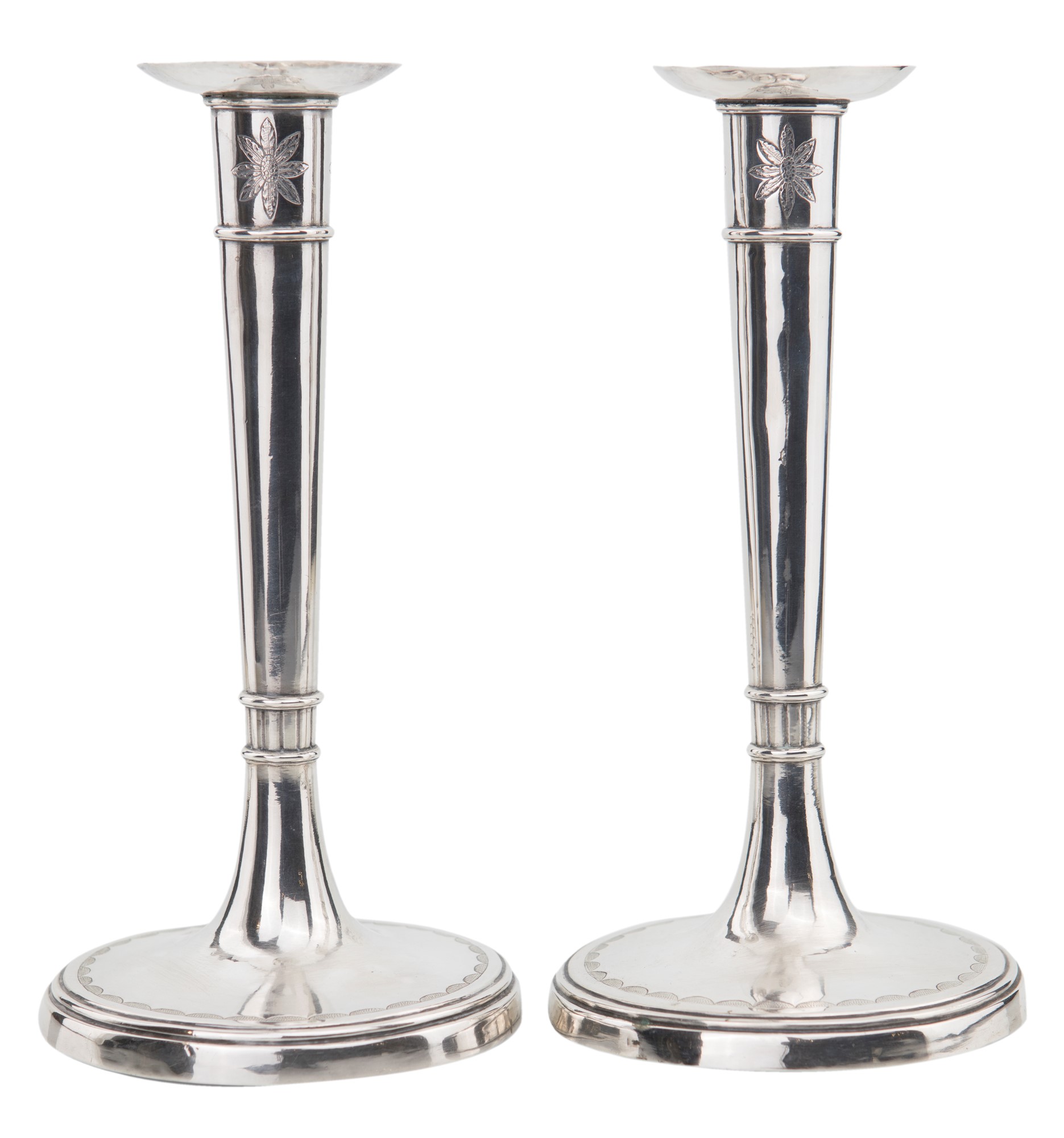 Coppia di candelieri in argento, Roma, fine del XVIII secolo, argentiere Vincenzo Torre