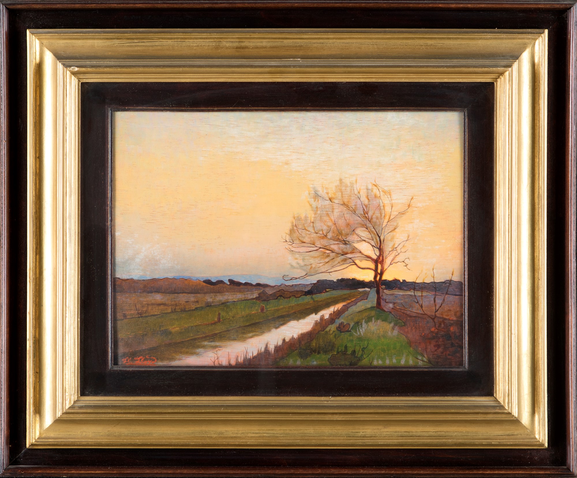 olio su tavola cm 26,5x36 - con la cornice: cm 49x58,5 Llewelyn Lloyd olio su tavola cm 26,5x36 - con la cornice: cm 49x58,5 Le cromie dolci e armoniose, il perfetto ordine compositivo, e una ricerca ancora erede della pittura macchiaiola rimandano alla migliore produzione di Lloyd, esponente di primo piano della pittura labronica del XX secolo. Firmato in basso a sinistra: "Ll. Lloyd"
