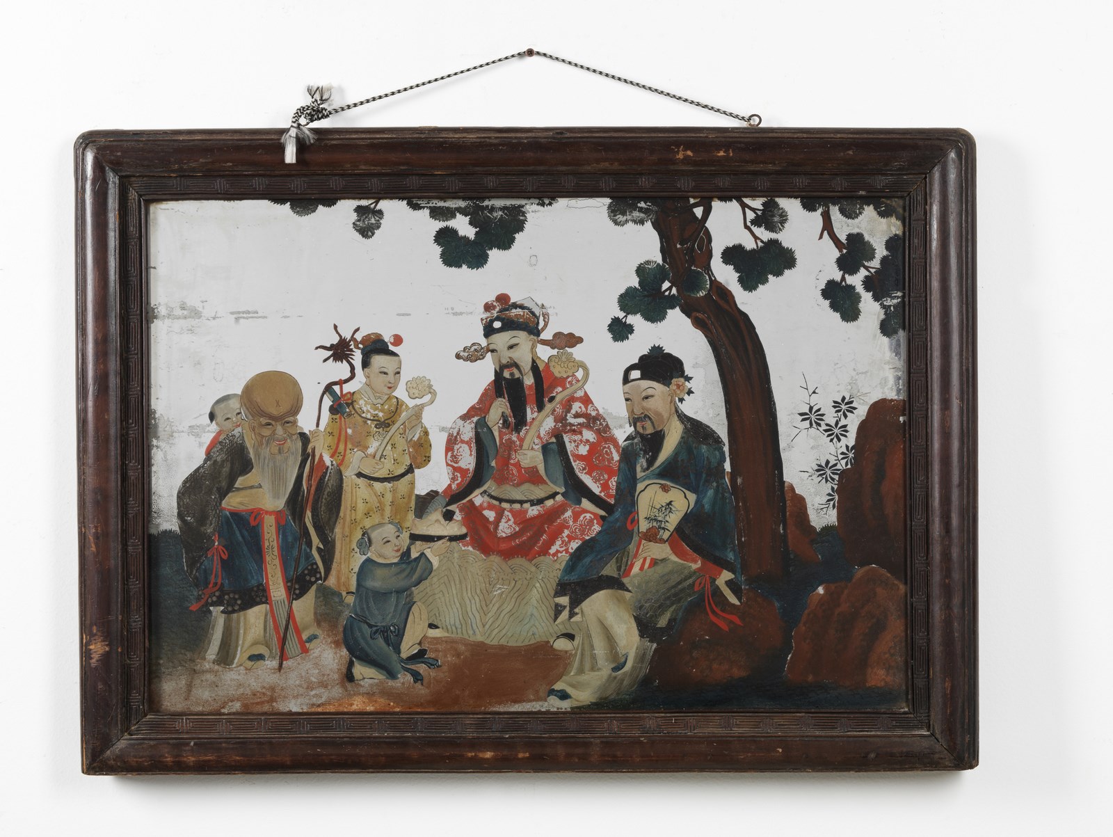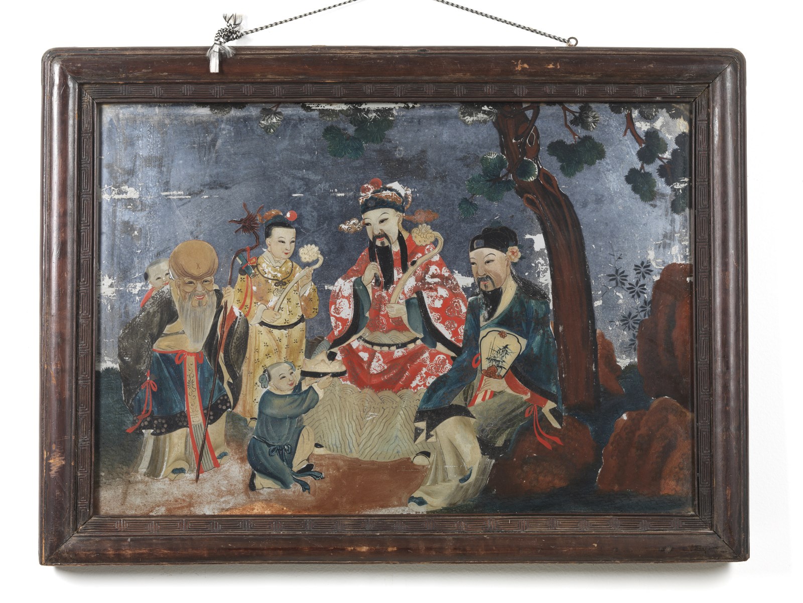 Arte Cinese - Dipinto su specchio raffigurante Immortali sotto pino cinese Cina, XIX secolo .