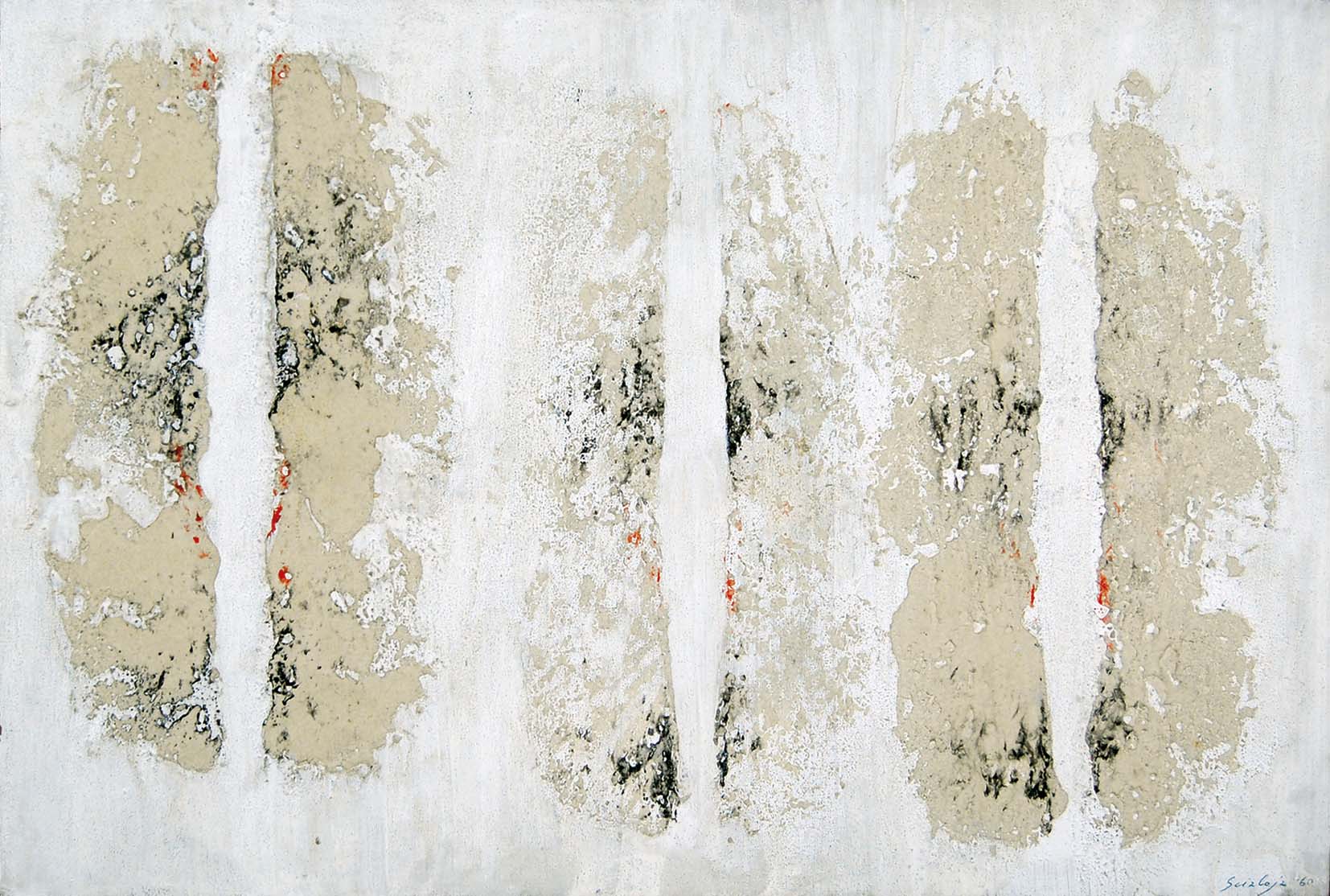 SCIALOJA TOTI Roma 1914 - 1998 senza titolo 1960 tecnica mista su cartone 65,5x96,5 firma e data in basso a destra Esposizioni: Galleria l'Elefante Treviso; Galleria Marlborough Roma – etichetta e timbri al retro