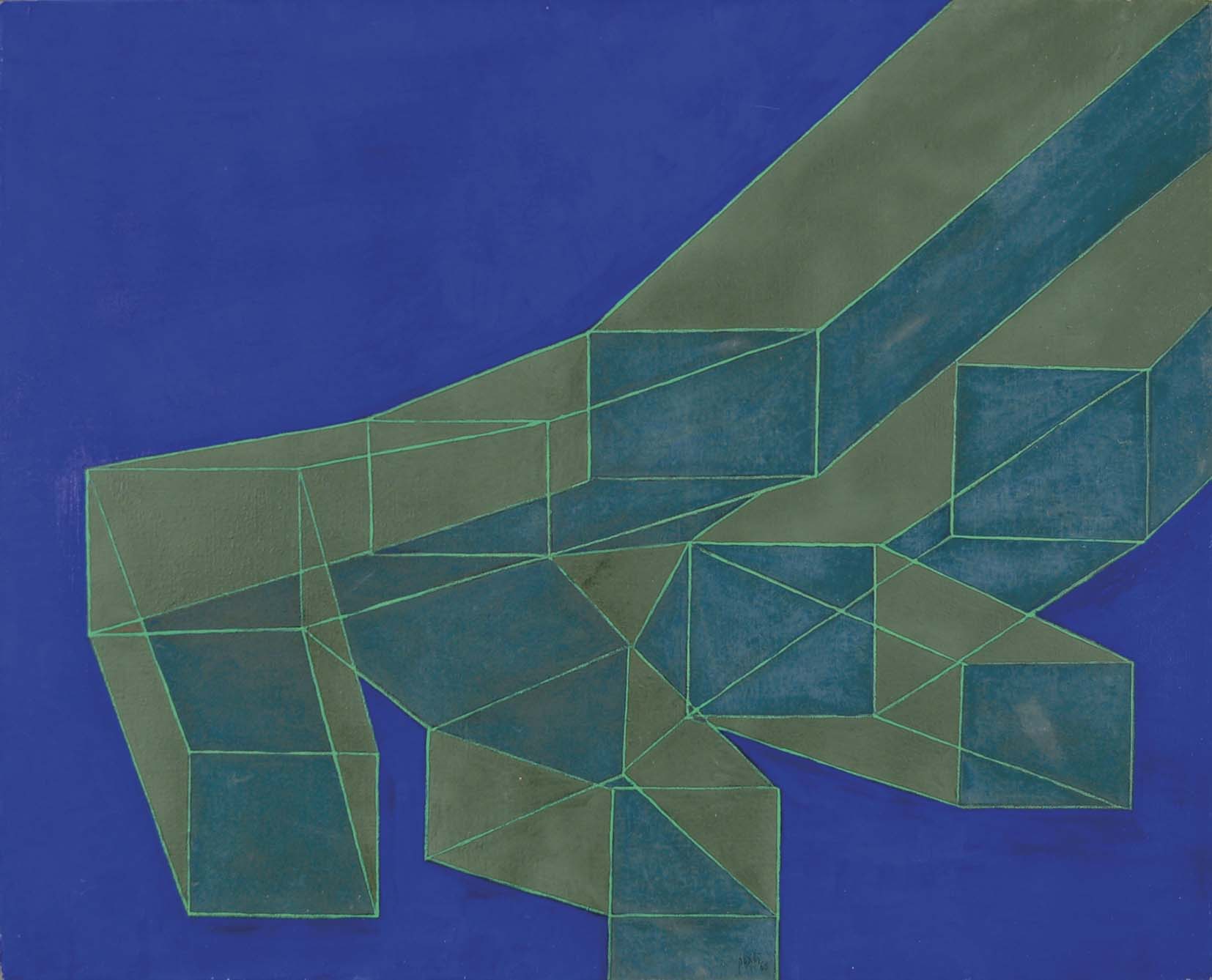 PERILLI ACHILLE Roma 1927 Notizie dalla caverna 1968 tecnica mista su tela 81x100 firma e data in basso al centro, firma data e titolo al retro Autentica dell'Autore su foto e su certificato della Galleria d'Arte Marlborough Roma nr. Cat. 55 Esposizioni: Galleria d'Arte Marlborough Roma; Galleria d'Arte Moderna l'Alfiere Torino; mostra d'Arte del xx secolo Vicenza – etichette e timbro al retro