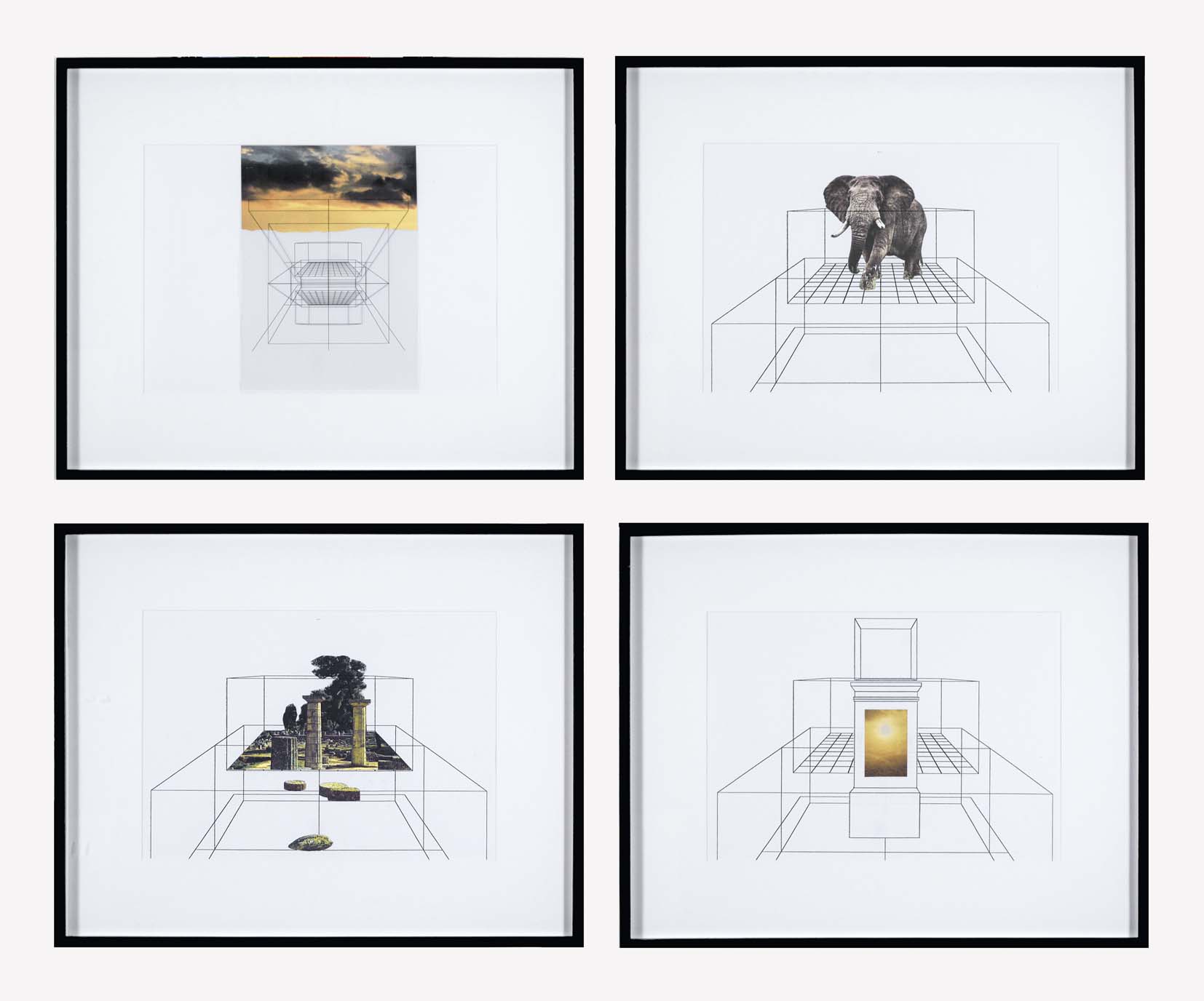 PAOLINI GIULIO Genova 1940 Studio per immacolata Concezione (senza titolo/senza autore) 2007/2008 4 elementi incorniciati - tecnica mista e collage su carta 50x62 cad. Autentica dell'Autore su foto Esposizioni: Lisson Gallery Londra; Fletcher Gallery Service Londra; Giacomo Guidi Arte Contemporanea Milano
