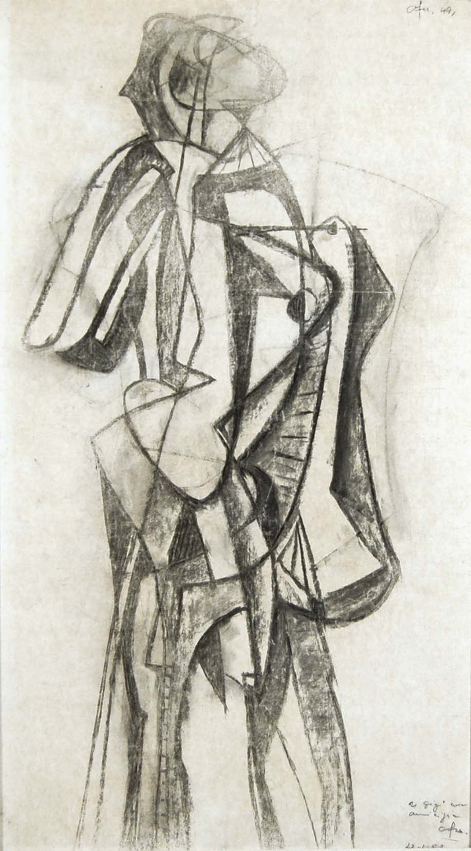 AFRO Udine 1912 - Zurigo 1976 senza titolo 1949 tecnica mista su carta intelata 75x43,6 firma e data in alto a destra firma data e dedica ad personam in basso a destra autentica dell'Archivio Afro nr. Arch. 49D748 su foto Esposizioni: Galleria F. Russo Roma – timbro al retro
