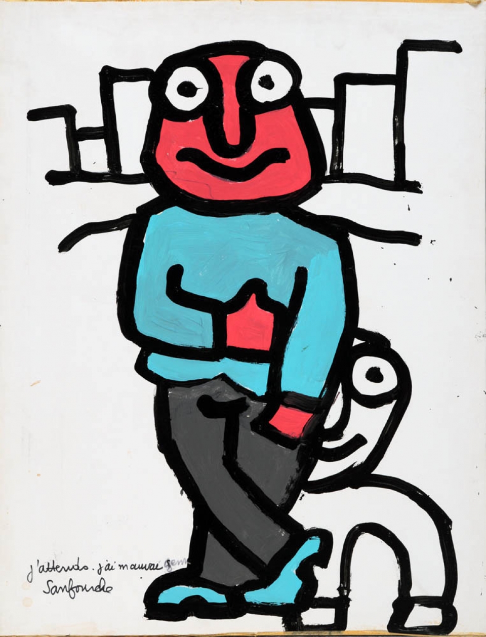 JEAN SANFOURCHE 1929 - 2010 Senza titolo Tempera su carta telata, cm. 65 x 50 Firmato in basso a destra Prov. Collezione Privata