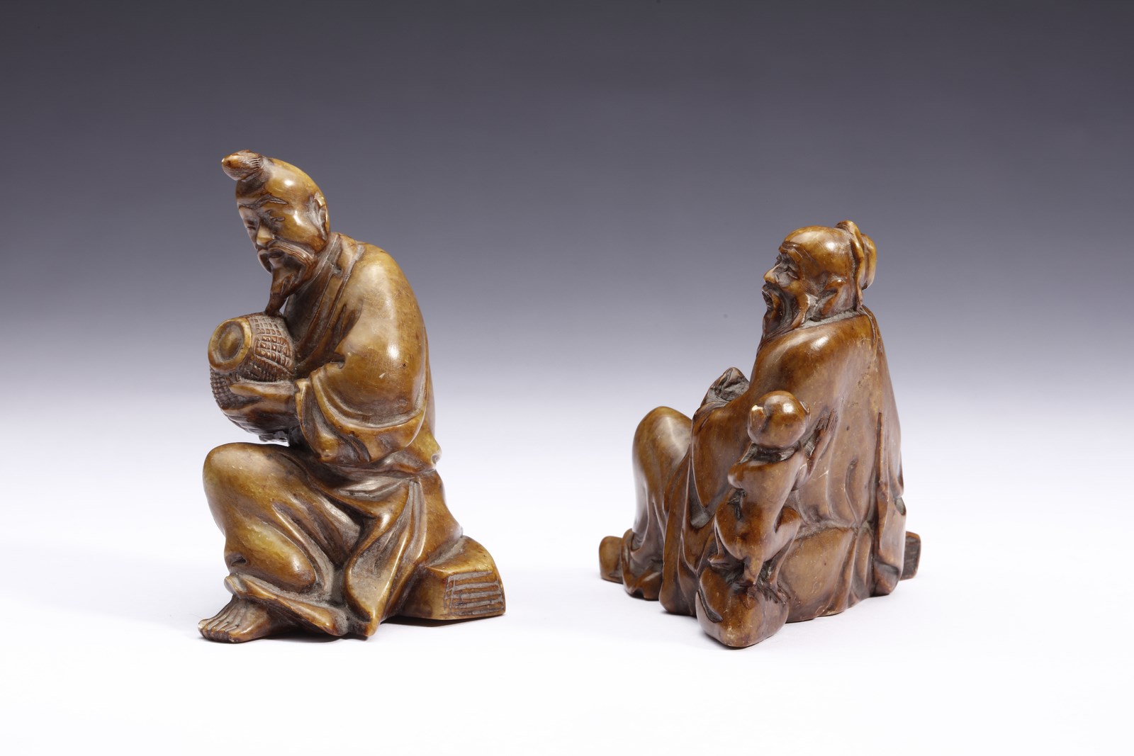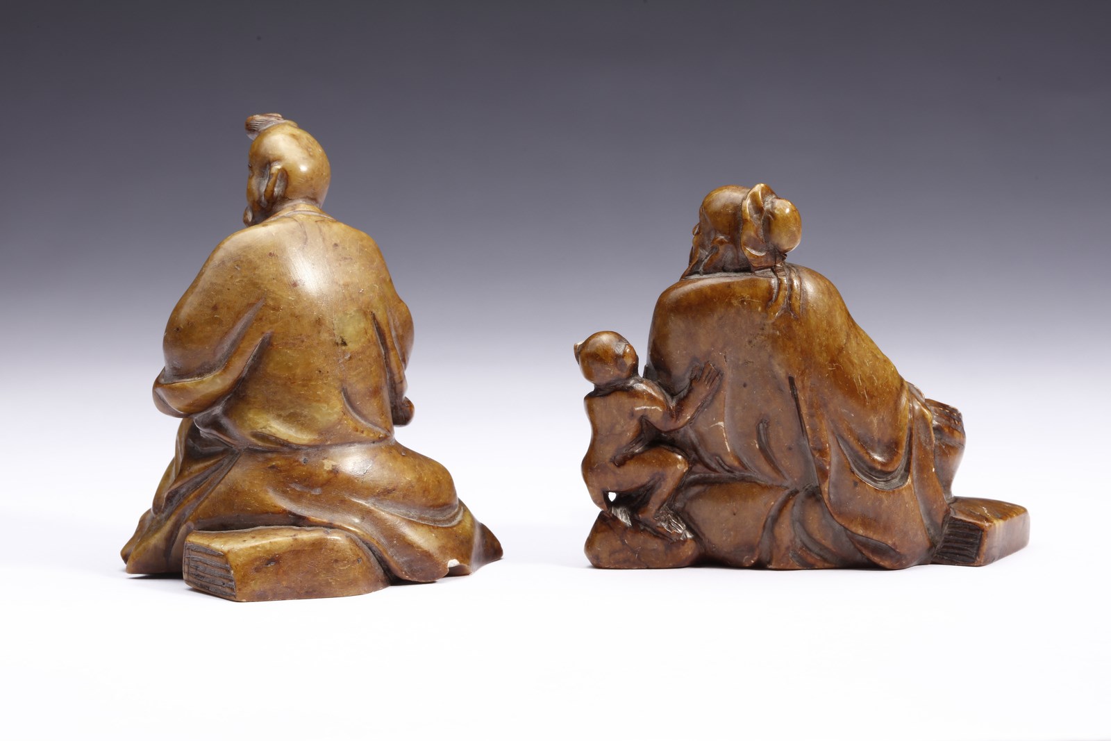 Arte Cinese - Due gruppi in saponaria raffiguranti anziani saggi Cina, XIX secolo .