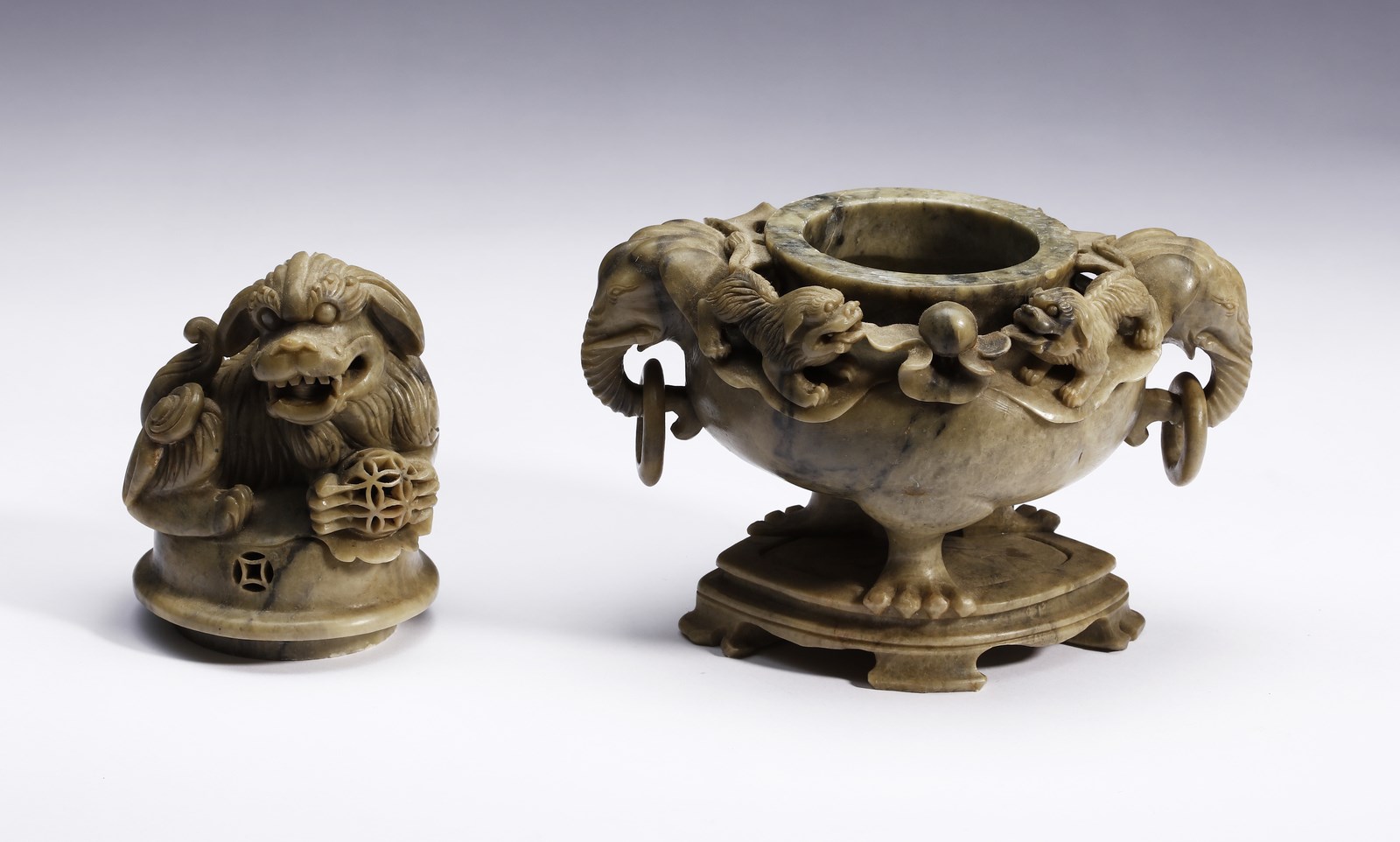 Arte Cinese - Gruppo di tre intagli in pietra saponaria Cina, XX secolo .