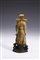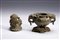 Cina, XX secolo . . Cm 32,00. Include: una figura di saggio; un vaso a corpo globulare decorato con elementi floreali ed un incensiere con coperchio sormontato da cane di fo.
