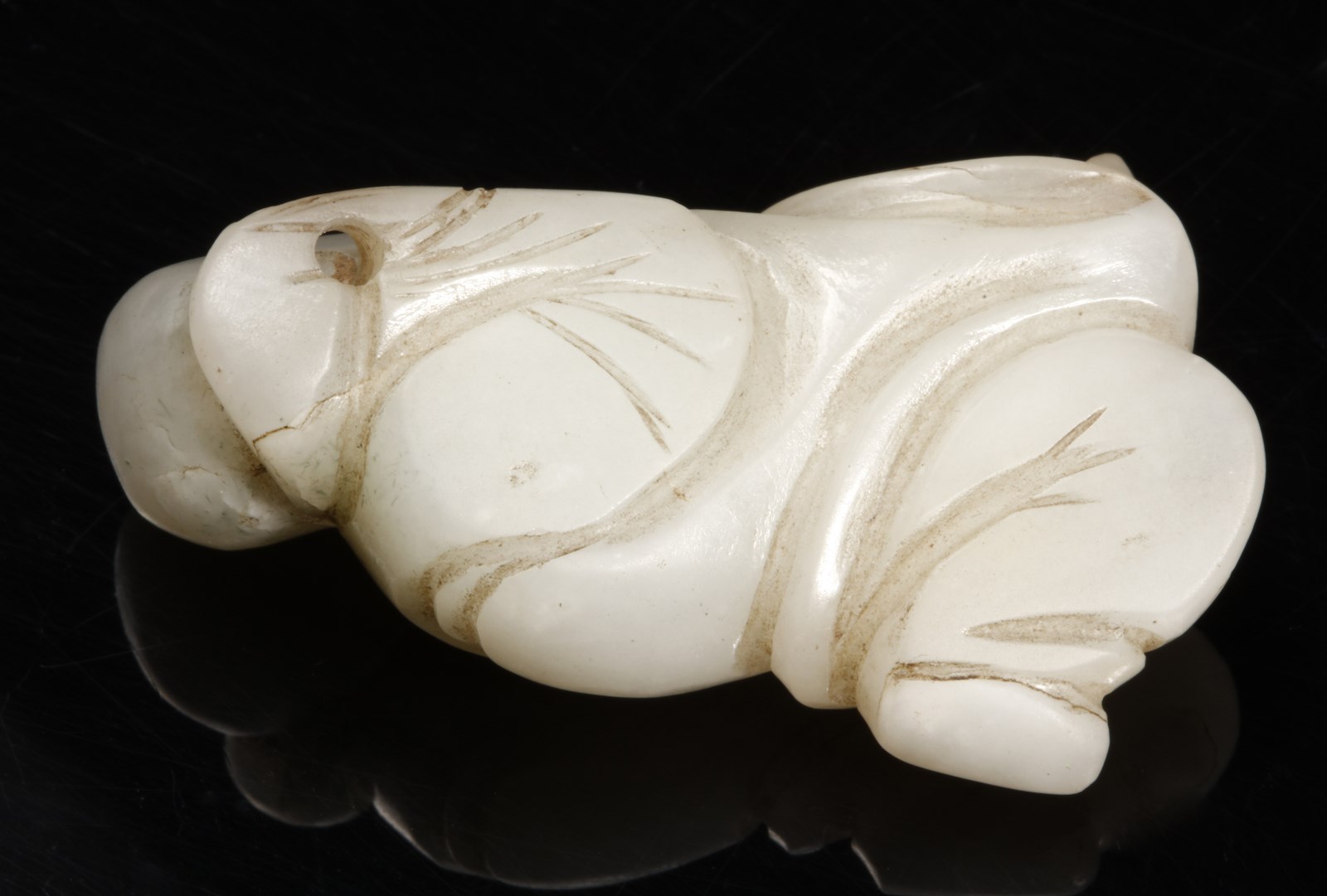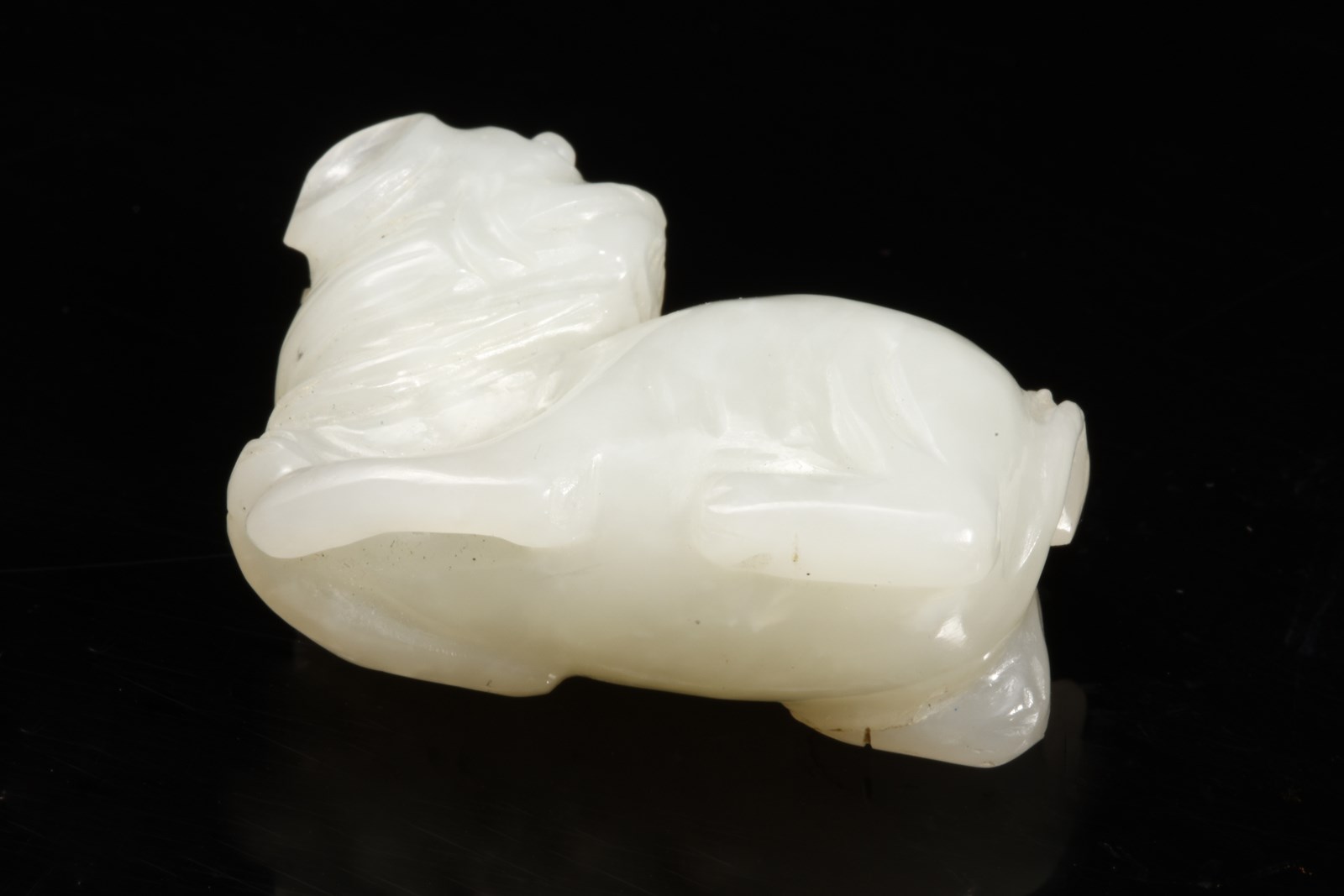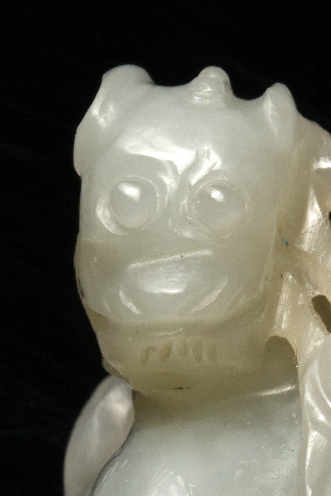 Arte Cinese - Due intagli in giada bianca raffiguranti leone e bambino Cina, XIX secolo .