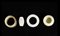 Cina, XIX - XX secolo . . Cm 3,40. Il lotto è composto da: un piccolo vaso cilindrico in giada celadon, un elemento di collana scannellato in giada bianca, un anello in giada bianca ed un anello da arciere in giada marezzata.