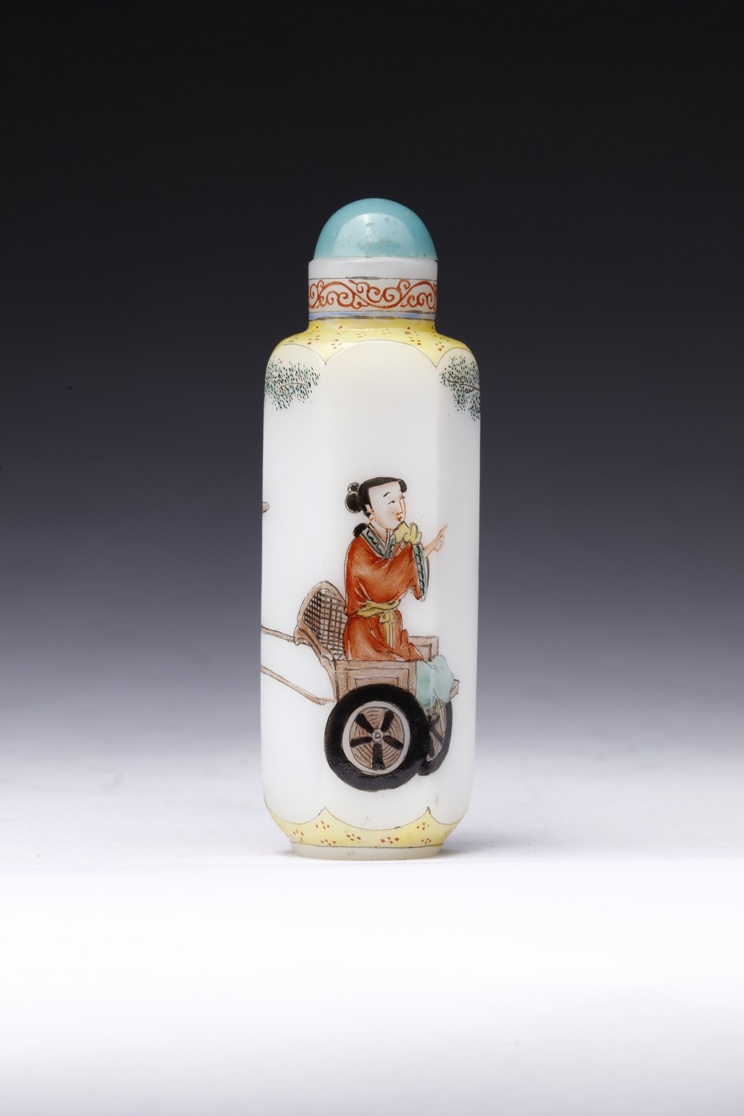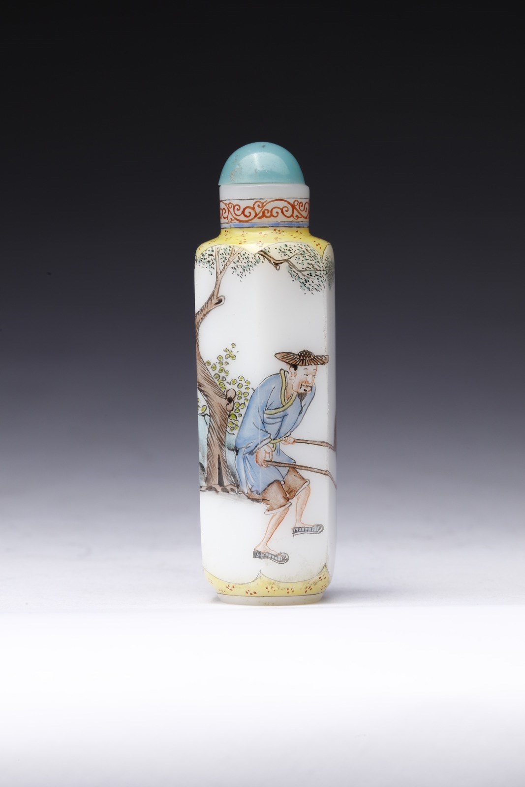 Arte Cinese - Tabacchiera esagonale in vetro dipinto Cina, XIX secolo .