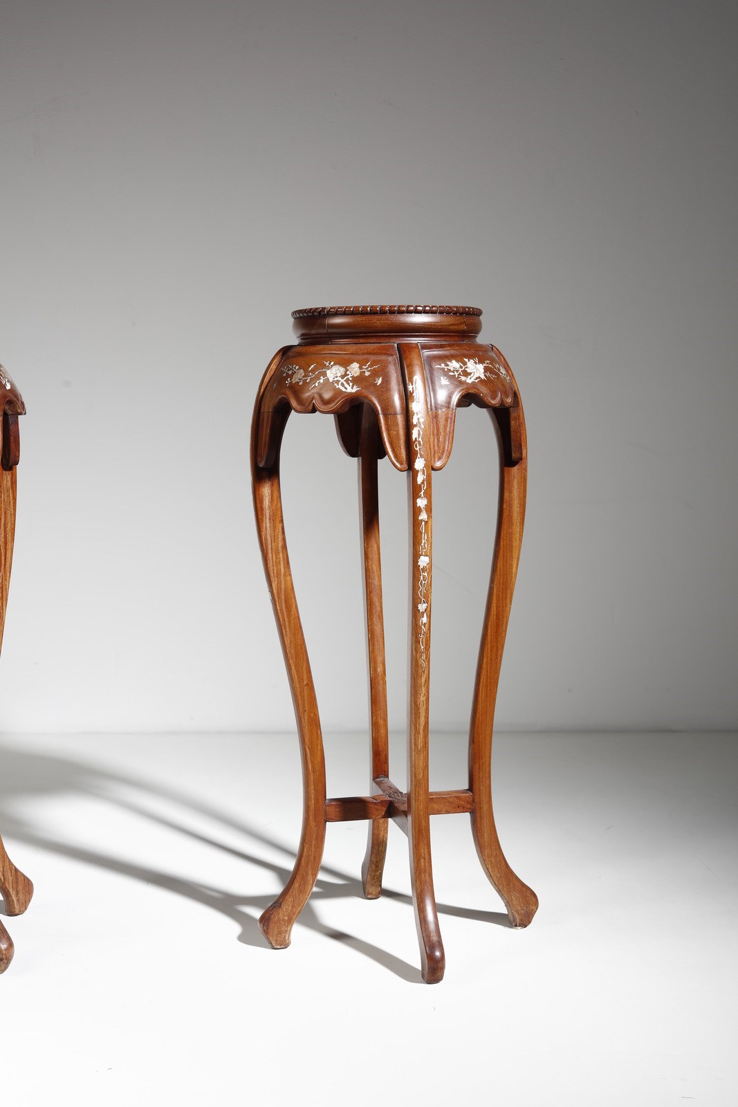 Arte Cinese Coppia di gueridon in legno intarsiato