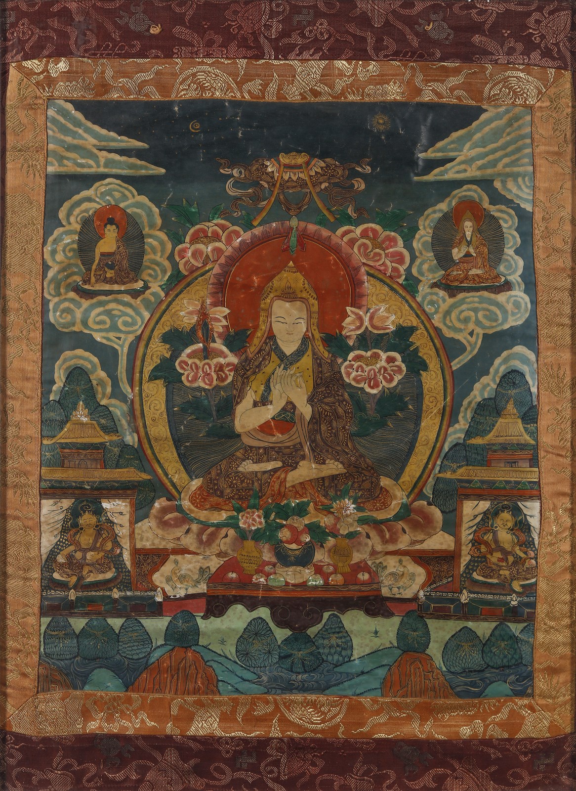 Arte Himalayana Thangka raffigurante Tsongkapha